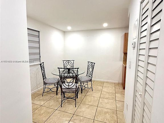 Discover this bright 1-bedroom, 1-bath condo with a large walk-in closet that has been converted to a second bedroom. Fresh white walls, tile floors, and recessed lighting create an airy feel throughout the living and dining areas. The kitchen offers plenty of cabinetry, appliances, and workspace for easy cooking. Enjoy new flooring in the bedroom and abundant natural light from large windows. Outside, the meticulously maintained grounds with Florida palm trees add a charming touch. Conveniently located near shopping, dining, and main roads, this condo is ideal as a full-time home or a sunny South Florida retreat. Schedule your showing today!