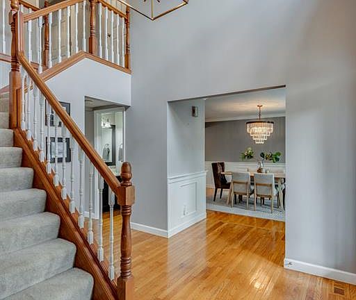 Stunning two-story home on a corner lot in a highly desirable location! Step into the impressive two-story entry with open staircase and all wood flooring throughout the main level. Enjoy separate dining and living areas, plus a spacious family room with large windows, plantation shutters, fireplace, and built-in bar. The kitchen features granite counters, stainless appliances, pantry, and a convenient work desk for the kids. Main floor laundry adds ease to daily living. Upstairs offers 4 bedrooms and 3 baths, including a beautiful primary suite with vaulted ceilings, renovated bath with double vanity, walk-in shower, and walk-in closet. The finished basement includes a bar area and an additional room perfect for an office, gym, or playroom—plus plenty of storage. Outside, relax in the fully fenced yard with patio and outdoor TV setup, ideal for entertaining. This home has it all—space, style, and a prime location! Additional updates: Windows (2023)