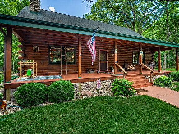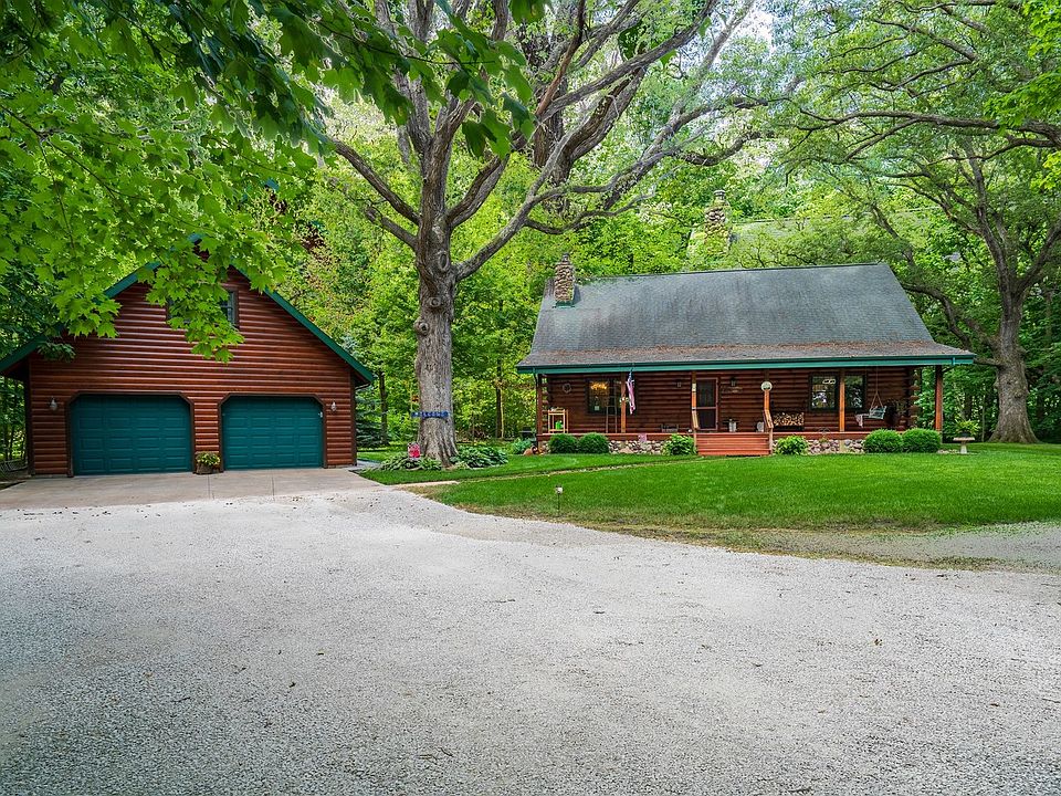 Escape to your dream retreat with this stunning 4-bedroom, 4.5-bathroom log cabin nestled on a wooded lot in a peaceful country subdivision. From the moment you step onto the full-length front porch, you'll fall in love with the rustic beauty of this home. Inside, the open-concept main level features a breathtaking two-story stone wood-burning fireplace, spacious living and dining areas, and a kitchen with breakfast bar-perfect for entertaining or cozy nights in. A sunroom at the back of the home offers views of nature year-round. The main floor primary suite includes a walk-in closet and a spa-like bath with a whirlpool tub, separate shower, and double vanity. A laundry area and guest half bath complete the first level. Upstairs, a stunning open staircase leads to a large loft, an additional full bathroom and bedroom with a walk-in closet, and attic storage. The finished basement adds even more living space, featuring a family room (where the new owner can add your own finishing touches), two bedrooms, a full bathroom, furnace room, and two storage rooms. A radon system is installed for added peace of mind. Outside, enjoy the private wooded setting from the back porch, relax around the fire pit on the patio, or make use of the 12x16 shed with electricity. The oversized 2-car insulated and heated detached garage offers a full bath, kitchen area, and two upstairs rooms (11x13 and 13x21)ideal for guests, a home office, or hobby space. This unique log home is a rare find-schedule your showing today!