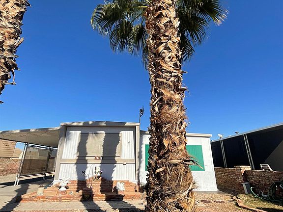 What a great price for this 2 Bedroom 1 Bath single wide, with RV hookups. Some updates included flooring, bathroom, windows, and heat pump. Multiply sheds with one that has been converted into a full-size bathroom with a washer and dryer. Room additions can be used as extra space or as an Arizona room. It is fully fenced with a double gate. The property is priced to sell. Call today for your appointment to view. No HOA fee's and you own the land.