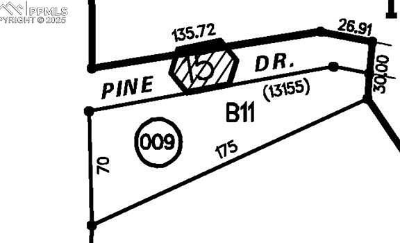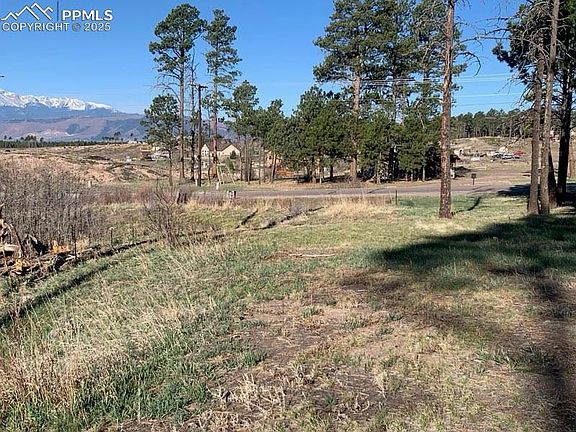 This is a very unique property on the edge of Kettle Creek with a wonderful Pikes Peak view.  Pine Drive is right off of Black Forest Rd. (Black Forest Rd is paved). Limitations by the creek may impact the building area. Two survey pins, next to t-posts are easy to see and show the northern boundary of Pine Dr.  Pine Drive is defunct to the best of knowledge which may allow additional building width for the buyer.  This may be perfect for a tiny home. Buyer will have to do their due diligence as there is limited information on this property.