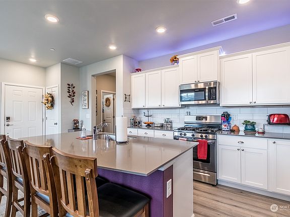 Welcome home to Discovery Park at Tehaleh, a one-of-a-kind community on a premium corner lot END UNIT! Loaded w/smart-home animation, keyless entry & Wi-Fi throughout. Kitchen w/quartz counters, soft-close drawers, ss appliances, gas range & island/breakfast bar. 3 beds, 2 full baths upstairs + loft w/ built-in cabinets, perfect for entertaining or your at-home office! Primary suite w/5-piece bath, walk-in closet & double vanity. Tankless hot water heater, private 2-car garage w/epoxy floors & fully fenced private yard. Explore the offerings of the community & be amazed. Minutes from town & walking distance to Tehaheh's 30 miles of trails + 14 parks. HOA cleans windows & dryer vents & maintains the beautiful community. Your new home awaits!