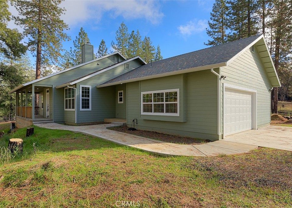 Brand-new custom cabin-style home on five private acres with sweeping panoramic views in every direction. This newly constructed property sits in a peaceful country setting and is bordered by thousands of acres of timberland, offering exceptional privacy and a rare connection to nature. A scenic drive around Concow Lake leads you to the home, creating a calm and inviting approach that reflects the tranquil lifestyle this property provides. Previously featured on Homestead Rescue, the home blends rustic character with modern comfort, ideal for anyone seeking both self-sufficiency and refined mountain living. Enjoy breathtaking sunrises from the front porch and glowing sunsets from the back while watching deer, turkeys, and other wildlife wander through the land. Inside, the home offers three bedrooms plus a den and two and a half bathrooms, including a spacious primary suite with a walk-in closet and a beautifully designed en suite. The shower features exquisite custom tile work—rich in color and texture—that elevates the entire space. Throughout the interior you’ll find custom knotty hickory cabinets, spacious open floorplan, granite counters and kitchen island, stone tile flooring, black industrial cabin-style fixtures, a walk-in pantry, propane appliances, plumbing for an off-grid propane refrigerator, and a cozy wood-burning fireplace that anchors the living area. Built with six-inch exterior walls, the home provides added insulation and year-round efficiency. The property includes open horse-friendly areas with simple enclosures—ideal for those with animals—while still offering the flexibility to add additional structures if desired. Other highlights include a large garden area, a fire pit for evenings under the stars, a two-car garage with a workshop space, and two wells for enhanced self-sufficiency. An exceptional bonus is the neighboring five-acre property at 3625 Charqui, also offered by the same seller. That parcel includes a three-bedroom, two-bath manufactured home, allowing the two properties together to function as a family compound, multigenerational setup, or additional rental opportunity. With its natural surroundings, privacy, craftsmanship, and optional adjoining acreage, this home offers a rare and inviting lifestyle just far enough from town to feel peaceful yet close enough for convenience, just over 7 miles to Canyon Lakes Market known by locals as the iconic dome store and/or the Pine Yankee Hill Hardware Store just up the street.