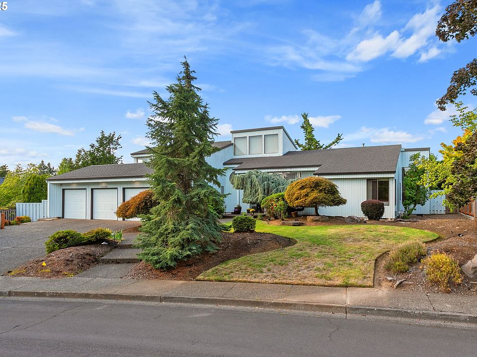 Discover this stunning One-Level-Living with this 3-bedroom, 3-bathroom home in the highly sought-after Bauer Woods neighborhood. Offering over 3,300 sq. ft. of living space, this expansive ranch with an upper-level bonus room combines comfort and elegance. Enjoy breathtaking views from the large upper deck—perfect for morning coffee or evening relaxation. Inside, soaring vaulted ceilings and walls of windows fill the home with natural light, creating an airy, inviting atmosphere. The sunken living room and formal dining room feature custom built-ins, while the vaulted family room offers a wet bar a cozy fireplace. The beautifully updated kitchen includes a spacious island, quartz counters, stainless steel appliances, and abundant storage, plus an adjacent eating area with slider to the backyard. The thoughtful layout offers a bedroom with double closets and built-ins and, and a full bath on one end of the home with an additional bedroom with a charming built-in bench, and a laundry room with ample storage are at the other. Retreat to the luxurious primary suite featuring vaulted ceilings, French doors, a walk-in closet, and private access to a covered patio with hot tub. The spa-like en-suite offers a large jetted soaking tub, dual vanities, and a walk-in shower. Step outside to a sprawling backyard with raised garden beds, multiple patio spaces, multiple decks, and a smart-zoned sprinkler system to keep everything lush. Additional features include 3-car garage with additional workshop/storage space, central A/C, smart thermostat and lock systems, and security cameras. Located in a prime location for Intel, Nike, top-rated schools, shopping, freeway access, and scenic Forest Park trails.