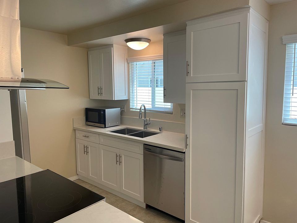 Freshly remodeled unit in a quiet four-plex. New kitchen cabinets, quartz countertops, like new stove range and dishwasher. Prior tenant left a nice refrigerator. Unit comes with private garage with room for 1 car and storage. Plenty of street parking. Washer and dryer is shared and available at no charge. Must have good credit. Owner pays water, gardner, and trash.