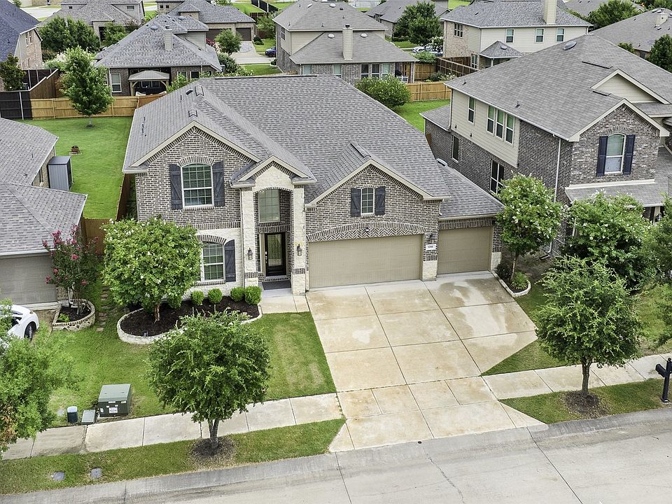 Stunning Home on this oversized (.203 acres) Cul-de-Sac Lot, True 3-Car Garage with Exceptional Upgrades. Gorgeous formal entry welcomes you into this beautiful lock & leave property. Interior features include hardwood floors, 2 finished floored attic spaces, 2 water heaters, dedicated home office, formal dining, eat in kitchen, media room and a game room. Two full baths downstairs and 1.5 baths upstairs. This floor plan has a downstairs office option but can be retrofit to a downstairs 4th bedroom with a closet. Kitchen boasts granite countertops, tumbled marble backsplash, custom pendant lighting, and an open layout perfect for hosting. You’ll be wowed at this pool sized backyard, custom installed cedar wood covered patio (2020), additional patio space (15x40) ideal for entertaining & everyday living. But wait there is more, backyard has another (10x10) side patio with convenient access door from the 3rd car garage. Rainbird Sprinkler System with wifi access. >>>Notable upgrades: New Roof (2023), Lennox Furnace (2021), Water Filtration System (2020), Whole-Home Surge Protector (2021), and Generator-ready Integration at Breaker Panel (2022). Located in the vibrant Artesia Community with two pools, clubhouse, and gym. Convenient to top-rated schools including newly opened, Richland HS- opened Fall of 2025, shopping, dining and access to US 380 or Dallas North Tollway.