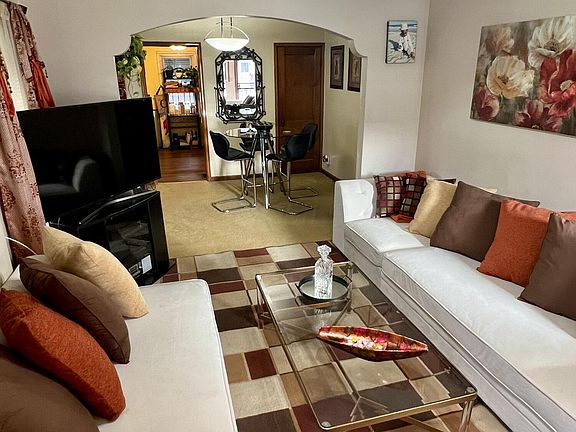 Updated charming ranch that offers 2 bedrooms, 1.5 baths, partially finished basement, 1 car garage, patio, and fenced in backyard. New roof installed 2021.