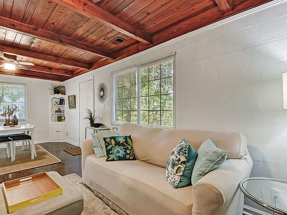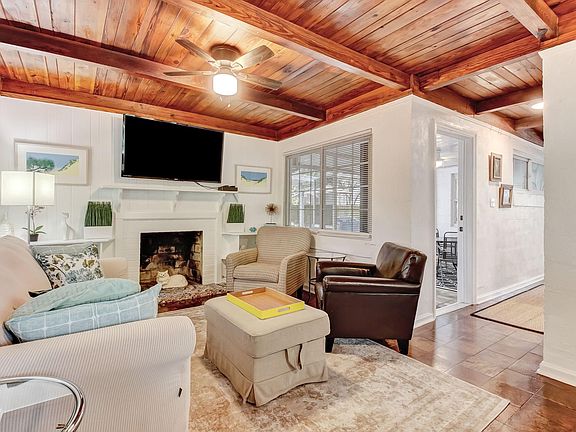 Exposed beam ceilingsEnormous live oak treeWell-equipped kitchenNew appliancesShaded patioCharming screened porch