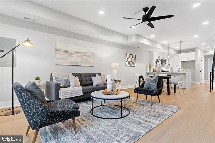 Welcome to Passyunk Place, a stunning new construction condo development located in the heart of Passyunk Square. This unit is the largest in the complex, offering a spacious bi-level layout with an open floor plan and abundant natural light. Inside, you'll find wide-plank hardwood floors, custom kitchen cabinetry, quartz countertops, recessed lighting, and a camera system with a doorbell. The main level features a generously sized living room, dining area, kitchen, a full bath, and a bedroom. Upstairs, you'll find two large bedrooms, each with ample closet space and en-suite bathrooms adorned with custom tile work. The top floor boasts a private roof deck with 360-degree views of the city and nearby bridges, ideal for entertaining or simply enjoying the stunning vistas. Situated in a highly walkable neighborhood, you'll have easy access to local restaurants, shopping, and parks, making this location unbeatable for urban living.