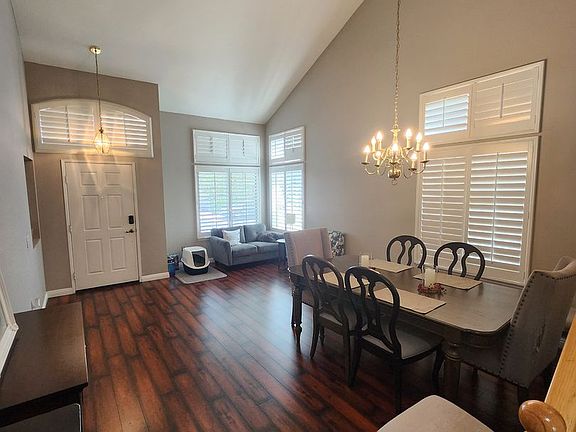Welcome to Sycamore Crossing! This gated community is tucked away just off the 55 and 22 freeway, and includes a pool, spa, and neighborhood playground. The home welcomes you into a formal living room with extended dining room, lots of natural light, and cathedral ceilings. Continue past the stairs and you come into the kitchen with central island, built-in range/oven, vent microwave, and dishwasher. From here you can stretch into the family room with a cozy fireplace, recessed shelves, and sliding glass door to get to the back yard.