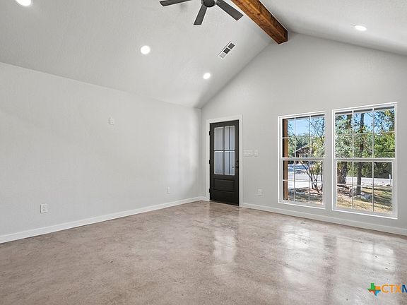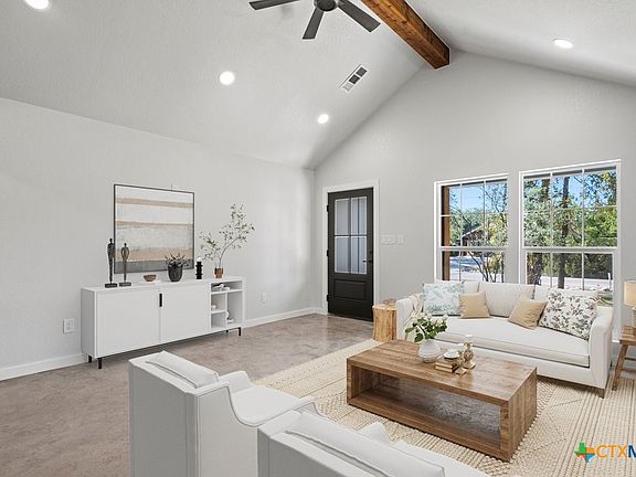 Welcome to Your Dream Home Near Canyon Lake! This beautifully constructed, brand-new residence offers 3 spacious bedrooms and 2 full bathrooms, designed with comfort and functionality in mind. The open-concept floor plan seamlessly connects the kitchen, dining, and living areas—perfect for entertaining guests or enjoying quality family time. The modern kitchen boasts top-of-the-line GE stainless steel Energy Star appliances, including: A double oven for culinary enthusiasts, A side-by-side refrigerator with water and ice dispenser, A built-in microwave and dishwasher for convenience. One standout feature: the living room’s Bluetooth-enabled ceiling fan, which syncs with your smart TV or phone to deliver immersive sound—ideal for movie nights or music lovers. Additional highlights include: A mudroom for easy organization, A generously sized laundry room, A garage with a sleek epoxy-coated floor. House comes with dry creek lot (Lot 470). Located just minutes from Canyon Lake Marina, boat ramps, swimming beaches, and a variety of shopping and dining options, this home offers the perfect blend of tranquility and accessibility. Nestled between Austin and San Antonio, and only a short drive to New Braunfels, it's a prime location for both weekend getaways and everyday living. Don’t miss your chance to tour this charming home—schedule your visit today!
