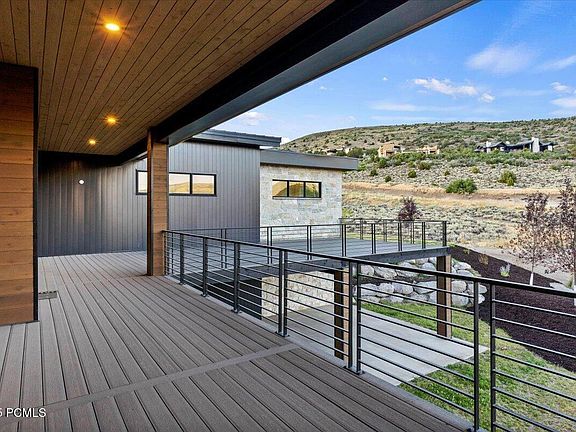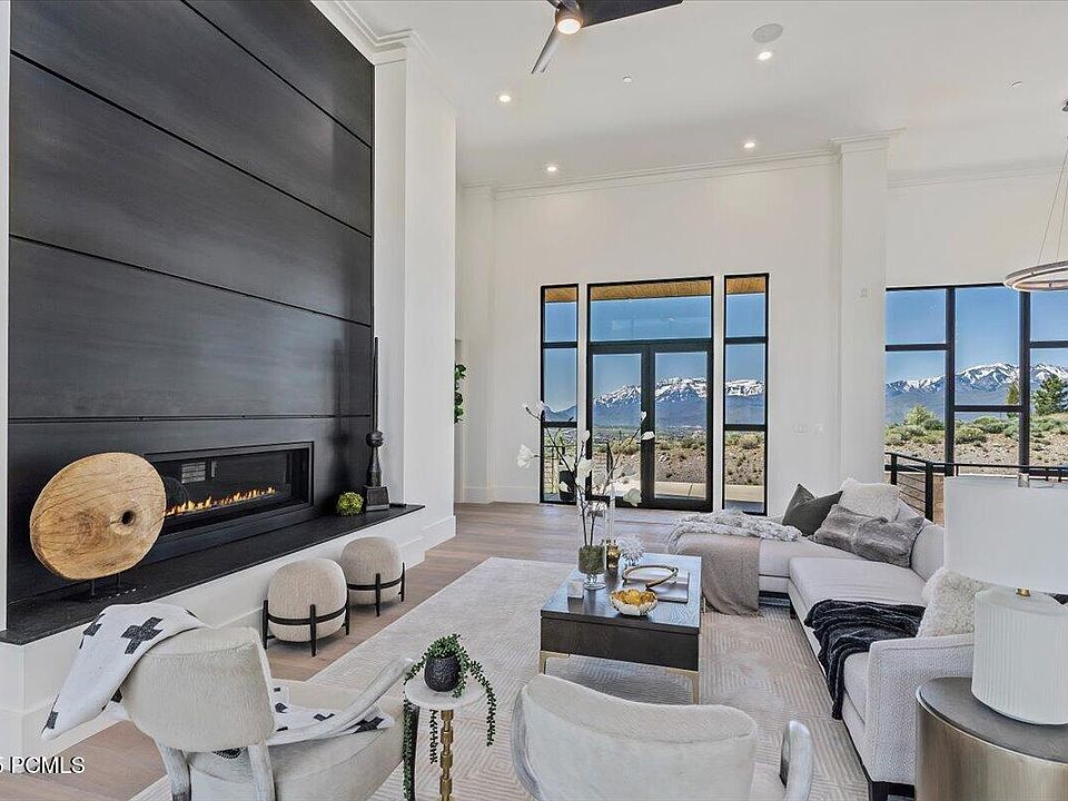 New Enhanced Price! Exceptional value in Red Ledges. Nestled within the private gates of Red Ledges, this newly constructed, upscale mountain modern home offers an exceptional blend of luxury, design, and breathtaking natural beauty. Boasting panoramic views of Heber Valley and the iconic Mount Timpanogos Crafted with the finest designer materials and finishes, the home features an open-concept layout with expansive living areas, perfect for both intimate gatherings and grand-scale entertaining. The main floor includes a serene primary suite with a spa-inspired bath, an executive office with its own private view deck, and a second primary suite with a separate entrance and en-suite bath, providing flexibility for guests or family members. Additionally, the home offers three laundry rooms, two on the main level and another on the lower level, adding convenience and practicality. The chef's kitchen is a culinary masterpiece, showcasing luxurious quartz countertops and top-of-the-line appliances. A ''hidden'' door leads to a stunning butler's pantry, ideal for preparing elaborate meals or hosting lavish events. Step outside to an expansive wrap-around deck and beautifully landscaped, creating the perfect setting for outdoor gatherings or peaceful retreats. The grand lower level features a wet bar, a cozy fireplace, a sun-filled gym, and a spacious theater room, ideal for relaxation and entertainment. Well-appointed en-suite guest rooms.