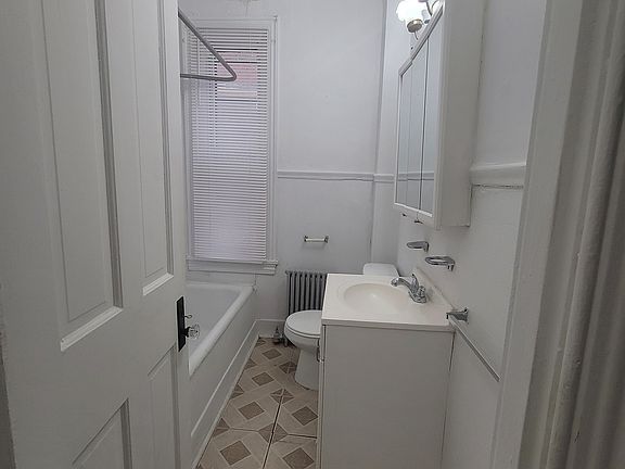 Gorgeous two bedroom, one full bathroom apartment. Perfect space for a bedroom and an office. Bedroom and a den or two bedrooms. Wall to Wall carpeting, mini blinds, and full kitchen. Ceiling fans throughout apartment. Heat and hot water is included with rent. A/C window Unit. Tenant will pay for electric and gas (cooking). Street parking.