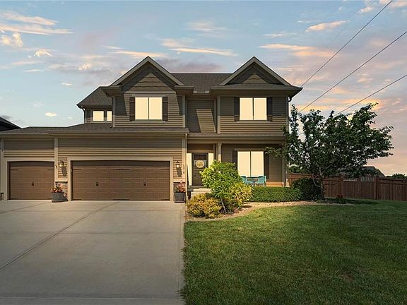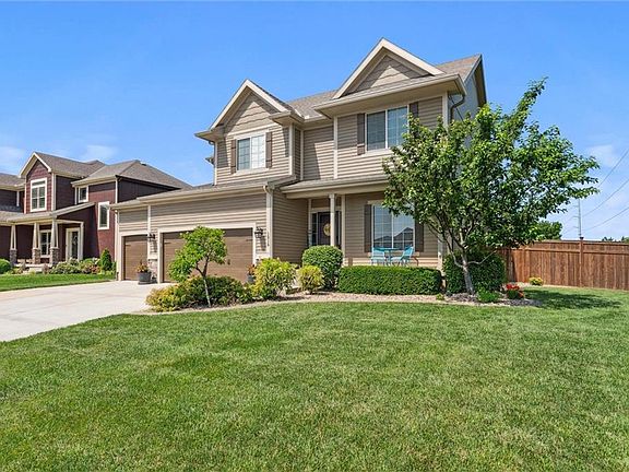 Situated in the heart of Lees Summit, this stunning custom-built home is nestled on an expansive, meticulously manicured lot. This impressive two-story residence offers an array of exceptional features, including a newly painted exterior, beautiful landscaping, a new shed, and a spacious 19x14 covered patio perfect for outdoor entertaining. The patio features an outdoor kitchen area complete with granite countertops, a built-in mini-fridge, cooking unit, and ample storage. Inside, the main floor presents gorgeous wood flooring, an open-concept living room and kitchen, a formal living room/playroom/flex space, a large mudroom, and a convenient half-bath area. The upper level comprises four spacious bedrooms, including a luxurious primary suite with an expansive en-suite bathroom featuring a jetted tub, walk-in shower, and an enormous walk-in closet. An additional bedroom serves as a secondary primary suite, complete with a private full bathroom and walk-in closet. The laundry room is equipped with folding space and extra hanging spaces. The unfinished basement features a full egress window and stubbing for a fourth full bathroom, awaiting your personal touch. This exceptional property offers a rare opportunity to join a small, intimate neighborhood with an ideal location.