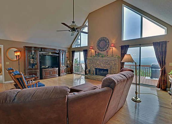 RELAX & ENJOY THE INCREDIBLE VIEW in this low-maintenance 3 bedroom (4th optional), 3 full bath home ranch-style home offering plenty of room for entertaining in the large great room with stacked stone fireplace, master-on-main, large master bathroom with his-and-hers walk-in closets, open eat-in kitchen with Cherry stained cabinets and stainless appliances, full finished basement with bar, pool table, recreation room and large work-shop that could easily be converted to a 4th bedroom. The low maintenance of this home allows you plenty of time to sit on the long expansive deck and look at one of the best views in North Georgia. Seller installed new well pump and has recently pumped septic tank making it ready for its new owner!!