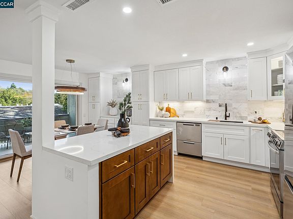 Welcome to your new beginning in this fully renovated Sonoma unit combining modern elegance with the simple comforts of home. Your manor showcases an open concept layout, ensuite main bedroom, a second full common bathroom, new appliances, and LVP flooring throughout. Andersen dual-pane windows ensure comfort and energy efficiency year-round. The designer kitchen includes quartz countertops, island with a waterfall edge, pull-out cabinet drawers, and under-cabinet LED lighting. The spacious living areas include recessed lighting on dimmers, an electric fireplace, and an outdoor covered patio with views of the rolling East Bay hills. Convenient parking is available with a nearby carport and guest spaces directly in front. Designed by Seniors for Seniors™, this manor provides added comforts including a full-sized in-unit laundry, step-in glass showers, dishwasher drawer, induction range, and a heated toilet seat. Contact your realtor to learn more about Fred Rooster Renovations' "Tailor to your Taste” program to incorporate your personal touch on your new home.