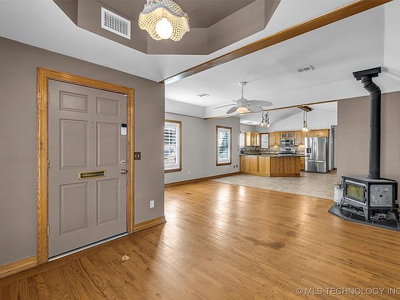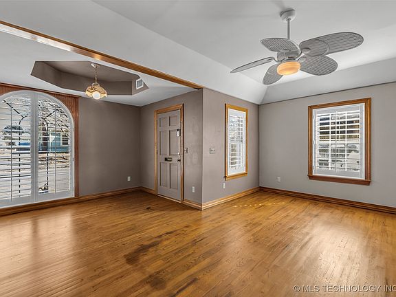 Fantastic bungalow near TU, Cherry Street, Mother Road Market, and Downtown! This beautiful and updated home features an open floor plan and kitchen, remodeled bathrooms, hardwood floors, custom plantation shutters throughout, wood-burning stove fireplace, vaulted ceiling in living room, large primary suite with walk-in closet and access to sunroom, large covered back patio, and a generator! There is so much to fall in love with here! All in a wonderfully convenient location to Route 66 and Midtown Tulsa.
