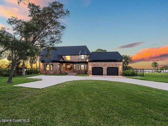 Welcome to 1316 S. Riverside Drive, a stunning riverfront estate in Indialantic, FL. This meticulously renovated 4-bedroom, 4-bathroom home offers 3,723 sq. ft. of luxurious living space on a sprawling .64-acre lot. The property features a new standing seam aluminum roof, impact-rated aluminum windows and sliders, and a private dock with updated pilings. Inside, no detail was spared with Cambria quartz countertops, De Chateau European oak flooring, Thermador appliances, and custom wood cabinetry.
