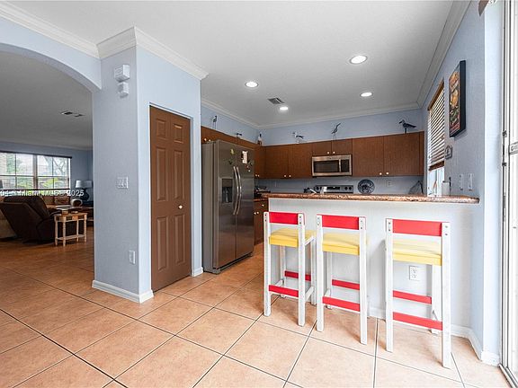 Welcome to Shores at Keys Gate! This beautiful 3 bed, 2.5 bath two-story home offers tile floors, crown molding, and natural light throughout. The kitchen boasts granite counters, SS appliances (new fridge 2023, stove/DW/microwave 2025), pantry, and eat-in bar. Spacious living, dining, and family rooms + guest half bath. Upstairs: a large master suite with walk-in closet, crown molding, and private bath. Two additional bedrooms with laminate floors, fans, and closets. A/C 2018. Hurricane shutters. Enjoy the backyard oasis with mango, banana, lime & apple trees, 2 gated entries, and a retractable awning. 1-car garage w/auto door + washer/dryer (2025). A Clubhouse & Pool are available to join. PROOF OF FUNDS AND/OR PRE-APPROVAL LETTER REQUIRED PRIOR TO SCHEDULING A SHOWING OF THE PROPERTY!