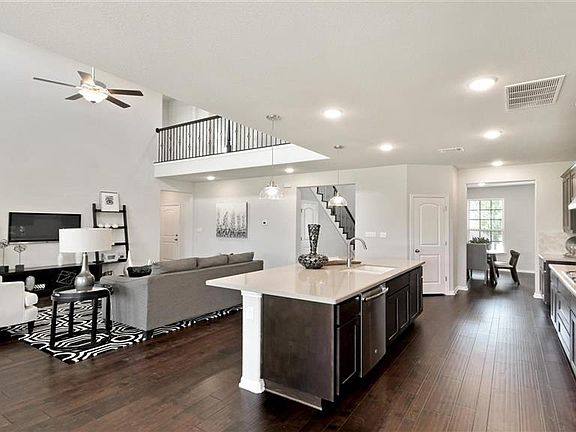 Designed to be roomy, the two-story four-bedroom Taylor Morrison Terracotta home gives you several features. The master suite is situated downstairs, separate from the three additional bedrooms, which are upstairs. Besides a powder room and utility room off the 2 car garage, this new house locates the kitchen, breakfast room, family room and study on the first level. The center of the upstairs level opens to the family room, adding to the home's open, spacious feel.