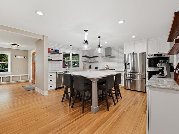 Better than new construction, this one-of-a-kind craftsman style rambler with nothing but the beautiful privacy of Woodlake Nature Center to look at beyond the spacious backyard. Prepare to be wowed at every corner! If the "Heart of the Home" is the kitchen, this incredible abode has a HUGE heart! No detail is left behind as the large center island kitchen opens to the expansive natural sunlit main floor with great room, dining room bedroom/office & owners suite. Energizing natural light flows through the large custom Marvin windows highlighting the meticulous red oak flooring, extensive custom 4" millwork & creating the feeling you are living amongst nature. The chef's kitchen contains all of today's most desired amenities, new custom enameled cabinetry, oak floors, quartz counters, stainless steel appliances & tastefully tiled backsplash. Open great room with custom woodwork, designer fireplace & spectacular views of the professionally landscaped yard & paver patio. Main floor owner's suite boasts a walk-in closet with W/D hook-ups, large sleeping quarters, stylish quartz & tile bath with separate tub & shower quietly located outside of the main living area of the home. The unique design effortlessly flows from each living space to the outdoors yet provides the flexibility to make this home whatever you want, need or grow into. The existing space was designed to easily convert into a very functional four-bedroom, three-bedroom or even two-bedroom home. The high-end finishes & attention to detail carry right through to the immaculate lower level including a large bedroom with egress window, beautifully tiled 3/4 bath and family room featuring fireplace, workout area & kitchenette/bar. The property has too many amazing new features to list. Please see the supplements for multiple pages of improvements, upgrades & additions! This property is a must see, you will not be disappointed.