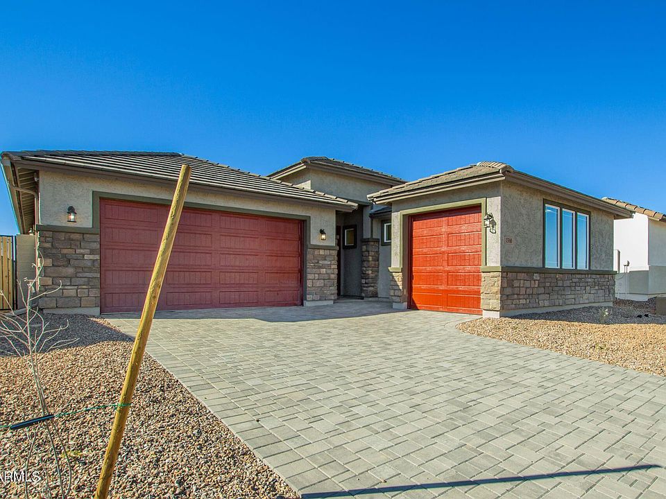 Welcome to The Views at Rancho Cabrillo. This is a growing new Peoria community. This is a completed 4412 plan from Scott Communities. This one is done as a 3 bedroom with a den, and a 3 car garage. Open great room floor plan. Gourmet kitchen with maple slate cabinets , silver falls granite tops, and GE stainless steel appliances. Large multi slide door from great room to the extended patio. Large master bath with walk in shower. The den is open to the great room and makes the space feel wide open. All this on an oversize lot. Come see this home and the community.