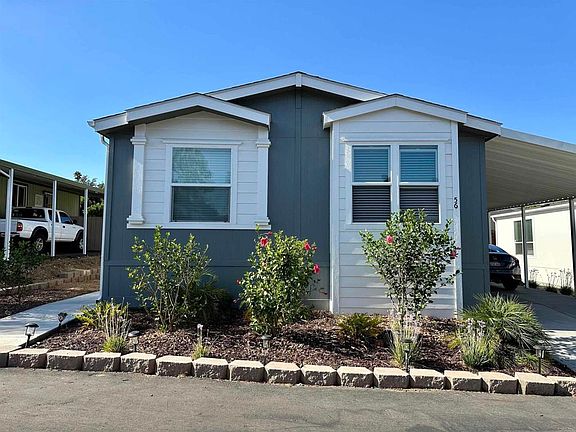 This beautiful, new home begins with neutral colors and a lovely floor plan in a well maintained, all ages park Terrace View Mobile Estates. With high ceilings for a spacious feel, this home offers ceiling fans in the living room, master bedroom, and guests bedrooms. The kitchen has been upgraded, offering an upgraded stainless steel package that includes side by side refrigerator w/water and ice dispenser, smooth pull out w/spray faucet, microwave, dishwasher and range. Recessed lighting in kitchen and over the furniture style island. Bathrooms offers mirrors, elongated toilets, upgraded vanity lights, and showers/tub combo. The laundry room offers plenty cabinets space. Community offers a park, pool, Jacuzzi, off-street parking, 3 areas with additional visitor parking, RV and boat parking, clubhouse and 2 laundry facilities. This home is also near the 8 freeway and a shopping centers.