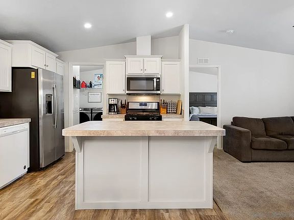Prepare to be impressed when you enter this superbly maintained home, positioned in a peaceful cul-de-sac location. This contemporary 2022 manufactured home offers modern living with comfort and style. Newer stainless steel appliances, ample island counter space, and stylish cabinetry make meal prep a joy. Spacious primary bedroom complete with a full bathroom and walk-in closet. Additional bedrooms are perfect for guests, a home office, or a growing family. New AC unit, new shed, gazebo with concrete slab and mountain views, new washer and drier still under warranty. Quiet peaceful community includes pool, clubhouse, playground, jacuzzi, and more! SPACE RENT IS $1,370.