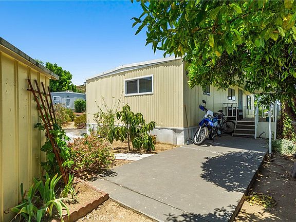 HUGE PRICE CUT: This charming mobile home sits on perhaps the best lot in all of Terrace View Mobile Estates. Terrace View is an all-ages park that has new owners and is beautifully maintained. The home is ideally located by the pool, picnic BBQ area, and clubhouse. The 180° mountain views from both outside and inside the home are amazing. The extra-large corner lot with no adjacent home on 3 sides has three garden areas, fruit trees, 2 separate patio areas, and a storage shed. It is also fully landscaped and well-maintained. Inside you’ll find wood-colored laminate floors and plenty of oversized windows with blinds. The open family room with an attached private porch is perfect for taking in the views and enjoying the private garden. The kitchen has views of the hills, and its own entrance, plus an upgraded gas range and oven, and an included new refrigerator. The adjacent laundry room comes with a new washer and dryer. The entire home has lots of natural light and is perfect for entertaining. The large primary en-suite bedroom has a walk-in closet, separate shower, and bath plus windows on two sides. The secondary bedroom is also a good size and sits across the hall from the 2nd full bath. Located within a short drive to an Elementary, Middle, and High School, plus shopping & restaurants, and easy freeway access. Don’t miss this one!