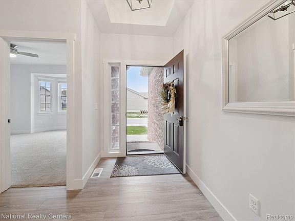 Discover easy living in this like-new 2022 ranch-style condo tucked at the back of The Landings, privately set among mature trees. The open-concept main level features a bright great room anchored by a gas fireplace, seamlessly flowing into a granite-topped kitchen with white soft-close cabinetry, stainless appliances, and an island with seating. The eat-in area opens through a doorwall to a spacious deck—ideal for relaxing or entertaining. First-floor laundry with washer and dryer included. Flexible layout offers 2 bedrooms plus an office/flex room that can function as a third bedroom. The serene primary suite delivers a spa-like feel and a walk-in closet with built-in shelving. Downstairs, a true walk-out basement is waiting to be finished—perfect for a future rec room, guest suite, gym, or workshop with direct outdoor access. Enjoy immediate occupancy and convenient proximity to Lake Fenton, expressways, shopping, dining, and schools. Barely lived in and meticulously maintained—move right in and make it yours.