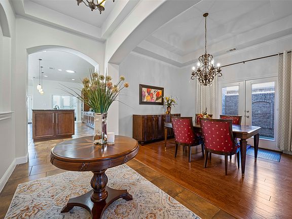 Welcome to this beautifully upgraded single-story home, this 3-bedroom, 2-bathroom residence offers a thoughtful layout with elegant finishes throughout. Perfectly situated in a prime Frisco neighborhood—just minutes from top-tier entertainment and lifestyle destinations. Located within 1 mile of the upcoming Universal Theme Park, PGA Frisco, and the highly anticipated Fields West development, this home offers unmatched convenience in one of the most dynamic growth areas in North Texas. This residence combines modern comfort with timeless style—all on one spacious level. Step inside to find upgraded tile flooring, vaulted ceilings, and crown molding that add a touch of sophistication. The spacious kitchen boasts expansive granite countertops, a gas cooktop, and plenty of workspace—perfect for both everyday living and entertaining. The primary suite features a cozy sitting area, skylights, a large walk-in shower, and a laundry room conveniently connected to the primary bath. Enjoy your mornings on the charming front porch, and unwind in the evenings on the covered back patio overlooking the greenbelt.