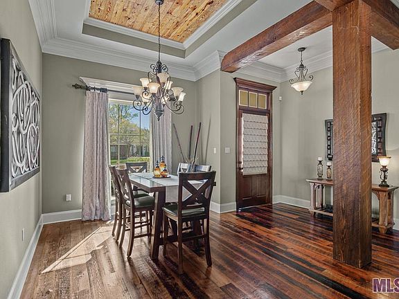 Welcome home to this lovely 4 bedroom 3 bathroom abode in Moss Pointe subdivision (Geismar)! The fourth bedroom situated over the garage is HUGE and could also be used for a media room, game room, hobby room, etc... You will enjoy a nice open floor plan with beautiful antiqued wood floors flowing through the living room, dining room, and main bedroom. Cypress beams adorn the kitchen and dining areas nicely to give that extra special touch of warmth. The spacious kitchen is equipped with slab granite, travertine backsplash, 5 burner gas stove and a huge island. Main bedroom has an en suite and bath is equipped with dual vanities, dual closets with built in drawers, jacuzzi tub, and spacious job built shower with dual shower heads. Views from your living room and breakfast area will be spectacular overlooking the gunite saltwater pool and fountain! In addition, the large outdoor kitchen area is sure to be the perfect space for your gatherings with family and friends. The exterior of this home has just been freshly painted; and some interior as well. Don’t miss out on this beautiful home in top rated Ascension School district!