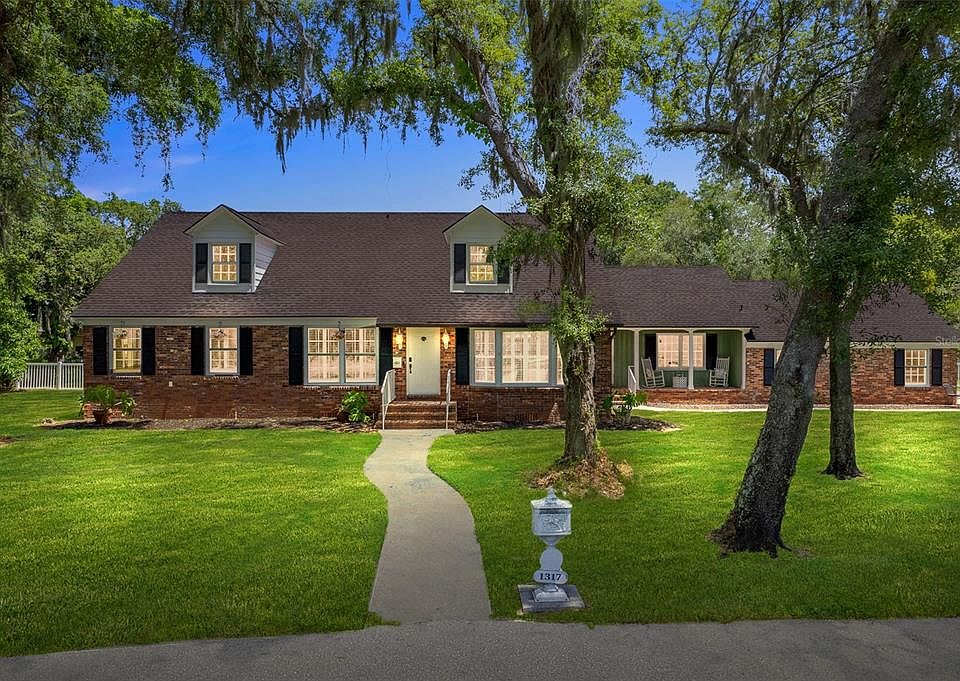 Charming two story brick residence situated on a sprawling half acre lot, across from 15 acre Limona Park. Offering a fully fenced back yard with an oversized pool while the front yard has a circular 12+ car driveway adding a touch of grandeur. Upon entry the atmosphere and charm leading into the family room boasting stunning wood beams, a picturesque window overlooking the pool and a cozy wood burning fireplace. A separate formal dining room is situated off the kitchen, while the separate living room offers versatility in entertaining friends or family. The first level features a spacious primary suite, while two additional first floor bedrooms provide comfortable spaces for family or guests. The upper level contains two very large loft bedrooms, each with a pleasant dormer window, connected by a full Jack and Jill bathroom. A designated office space with a large front facing window offers a serene environment for productivity, overlooking the park. Key features include crown molding, chair rails and wainscoting, beautiful pegged hardwood floors in the living areas, plantation shutters, a covered patio featuring a built in brick stove and a side facing 2 car garage. All of this conveniently located near, Limona Elementary school, The Brandon Town Center, numerous dining and entertainment options, as well as Interstate 75, Interstate 4, and the Selmon Expressway for quick highway access in all directions.