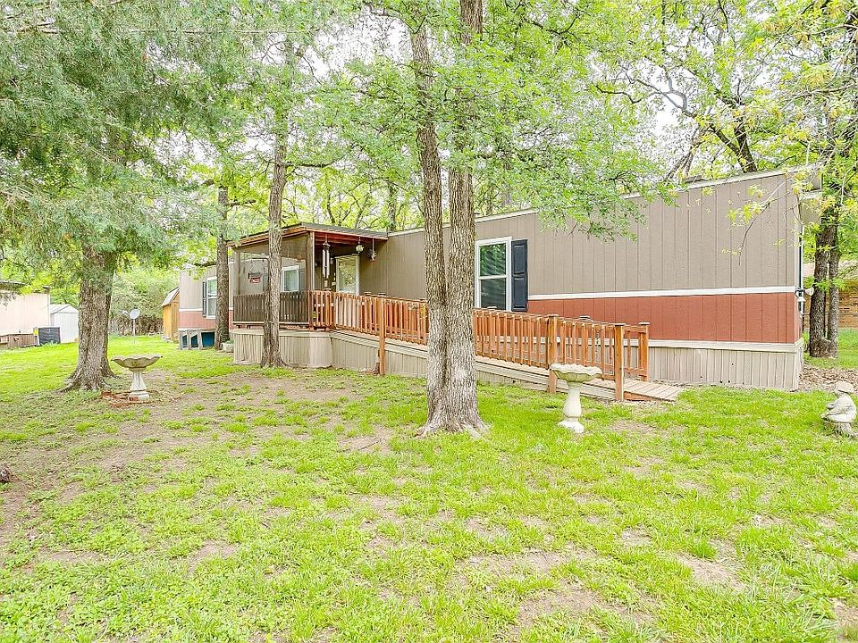 Wow this 2016 built home within walking distance to Eagle Mountain Lake is in the original location and one owner. It is very well kept and boast of a nice open floor open. Natural light fills the open kitchen with eat at Island. Spacious area for dining table and large living area. Split bedroom arrangement. Good size laundry room with built in cabinets. Yard is like a park with mature trees and nice screen porch to sit and watch the deer. Nice ramp on front porch and back porch. Storage shed has a loft for additional storage.