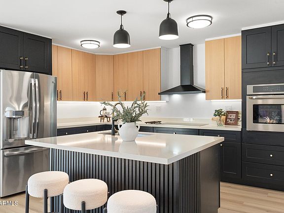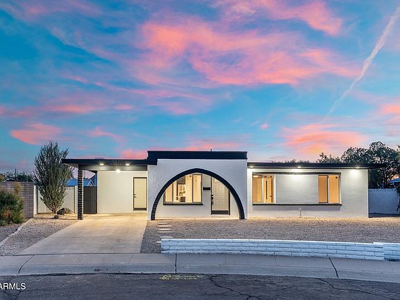COMPLETE RENOVATION IN 2025 by high end general contractor for a RARE Tempe find! This home features NEW dual-pane windows, NEW wide plank, wood-look vinyl flooring throughout, NEW interior & exterior paint, NEW stucco, NEW recessed lighting, NEW light fixtures, NEW 200-amp electrical panel, NEW pool plaster, tile, pool light and NEW concrete cool decking surrounding the pool and covered patio, NEW sod, desert landscape and NEW irrigation system. Step in and admire the NEW show-stopping chef's kitchen featuring custom, two-tone cabinetry, modern quartz countertops, a NEW statement industrial hood with sleek electric cooktop, as well as stainless-steel appliances. A beautifully crafted brick fireplace adds warmth, design and cozy seating. The custom lighting, including under-cabinet and motion-sensor hallway lighting, adds a touch of elegance. Located just minutes from ASU, Tempe Town Lake, Mill Ave, and major freeways (101 & 60), this home provides easy access to everything Tempe has to offer. Enjoy Meyer Park just a 2-minute walk away, plus nearby dining, shopping, and entertainment including Four Peaks Brewery, Whole Foods, and Shalimar Golf Course. FULLY PERMITTED and ready to close!