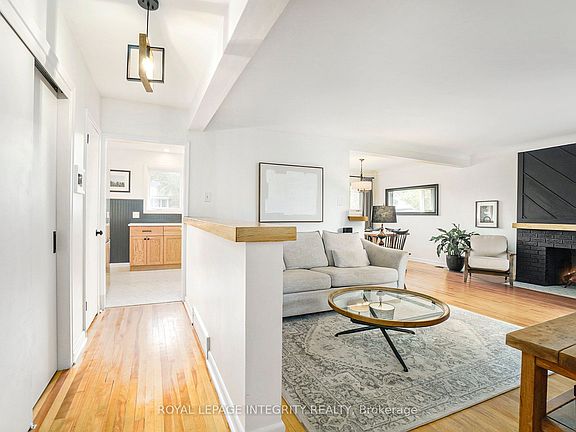 Located on a wonderful street just steps from Agincourt Public School, this all-brick Campeau-built bungalow combines solid craftsmanship with stylish modern updates. Step into a beautifully tiled entry with custom wainscoting and a bright, open-concept layout. The spacious living room is filled with natural light, a perfect spot for your plants to thrive and features a beautifully designed fireplace that makes a striking focal point. The dining area flows into a stunning renovated kitchen with modern flair and traditional finishes. You will love the updated stainless steel appliances and ample storage here. Three well-sized bedrooms and a gorgeous renovated bathroom with a glass-enclosed walk-in shower complete the main level. Downstairs, you'll find a large unfinished basement offering endless potential - with rough-ins ready for a future bathroom, its a perfect blank slate for your dream basement project. Outside, enjoy low-maintenance perennial gardens, a cozy patio and a handy shed for extra storage. Centrally located in sought-after Copeland Park, you'll love the unbeatable convenience - quick access to Highway 417, public transit and shopping all with ease. Families just love the walkability to nearby parks and the friendly, tight-knit community surrounded by mature trees and timeless charm. Important updates to note include roof 2018, AC & furnace 2020, some windows 2015 and kitchen and bathroom 2021. We know you will just fall for Ferguson! Please allow 24 hrs irrev. on all offers.