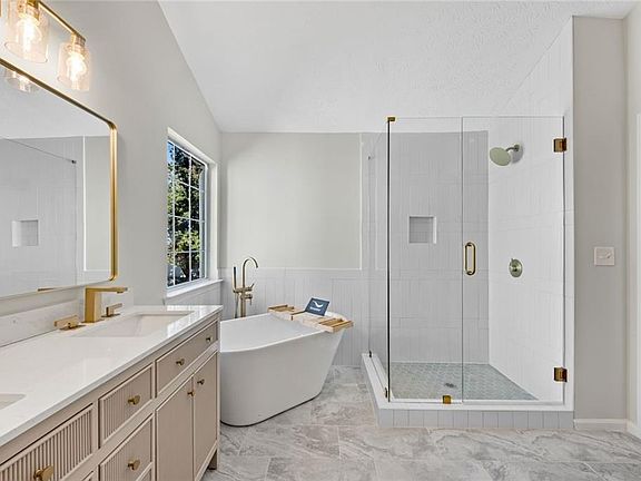 Welcome to the prettiest home in the neighborhood! Gorgeous updated 3 bedroom, 3 full bathroom home with a one car garage in secured, gated community the Gates at Bouldercrest located in the heart of East Atlanta! This vibrant community features a spacious dog park, scenic walking sidewalks, & a beautiful pavilion complete with grills & picnic tables perfect for outdoor gatherings. Charming curb appeal showcases grassy front lawn, flat driveway, and brick façade. Open the front door to a quant entry foyer with all new flooring throughout! Main level guest bedroom is to your left with a full hall bathroom that has a new vanity, new mirror, new lighting, & tub/shower combo also making it a perfect powder room for visitors. Walk into the family room with soaring vaulted ceilings, a cozy fireplace great for unwinding after a long day, & large 2-story windows! Step inside to the designer kitchen featuring new white shaker cabinets, gold hardware, cheerful quartz countertops, new sleek stainless-steel appliances including a gas oven & gas stove cooktop, peninsula w/ overhang for bar seating, walk-in pantry, & the light backsplash compliments the culinary space! The bright dining room adjacent to the kitchen makes this a full entertaining and eat-in experience. Exterior French door leads to your private concrete patio inside the low maintenance fenced in backyard w/ gate out towards the dog park making it feel like a total extension of your backyard. Handy exterior lockable storage closet can hold all your extras. Head upstairs to the spacious primary bedroom w/ vaulted ceiling, all new upper-level carpet, charming built-in book shelves, & windows overlooking the front yard. Step inside the stunning primary bathroom showcasing a large frameless glass shower, luxurious soaking tub, walk-in closet, tiled floor, & a designer double vanity all elevated with gold hardware, lighting, and mirror. The upper hallway is home to the separate laundry room & another full bathroom with easy access to the third bedroom also with a vaulted ceiling. Discover the hot hangout of East Atlanta village with casual eateries nearby offering southern comfort food with a modern twist and eclectic menus with local ingredients! Within 1 mile discover Little Five Points Pizza, Krog Street Market (indoor markets with curates, eats, and treats), Homegrown Taverna, Slope’s Bar & Grille, Cool Beans Coffee, Remedy, The Sound Table, Eclectic Plates & Cocktails. Tons of nearby greenspace with Arts & culture include Brownwood Park, Glenwood Park, along with live music/nightlife/arts/culture: Krog market, East Atlanta Street Fest, Star Bar, and Joystick Gamebar. Convenient shopping close by includes Trader Joes & East Atl Farmer’s Market. Quick access to major routes for easy city exploration & nearby areas I-20, I-75, I-85, Zoo Atlanta, MARTA, and The Beltline. This home includes all new interior paint, new carpet, new tile, new LVP flooring throughout, all new lights, chandeliers, & fans, all interior doors painted designer accent color, recessed lighting, new water heater, new HVAC, & the roof is approximately 3 years old! Whether you are tired of renting & looking for a home for yourself or as an investor with no long-term rental restrictions, this home has it all: low monthly HOA, walkable neighborhood with tree lined streets, friendly neighbors, all with a small-town feel preserving a peaceful residential ambiance right in the heart of Atlanta.