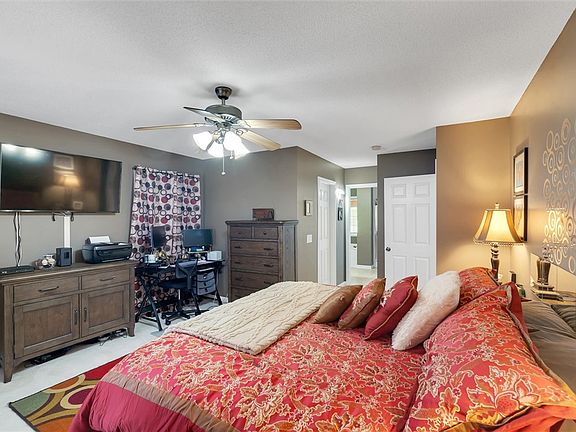 - Ceiling Fan(s), Garden Tub/Roman Tub, High Ceilings, Laminate Countertop, Bath in Primary Bedroom, Main Level Primary, Pull Down Attic Stairs, Separate Shower, Walk-In Closet(s), Walk-In Shower, Window Treatments