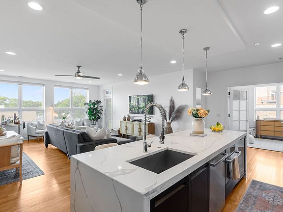 Welcome to your new home at the intersection of Old Town and River North, The Stanton! Built in 2016, this 3-bedroom, 2-bathroom home offers soaring 9' ceilings, expansive windows with west and north exposure, and an airy open-concept layout designed for both everyday living and entertaining. The chef's kitchen features sleek European soft-close cabinetry, high-end stainless-steel appliances, quartz countertops, and a dramatic waterfall island that anchors the space. The living and dining areas flow seamlessly onto a private balcony-perfect for enjoying your morning coffee or evening sunsets. The massive primary suite is a true retreat, complete with a walk-in closet and a spa-inspired en-suite bath boasting heated floors, a dual vanity, a soaking tub, and a separate glass-enclosed shower. Two additional bedrooms offer flexibility for a guest room, home office, or fitness space. Additional highlights include hardwood floors throughout, in-unit laundry, and 2 heated garage parking spaces. With its unbeatable Old Town location, you're just minutes from Wells Street dining, Lincoln Park, boutique shopping, the lakefront, and easy access to public transit. This home checks every box for modern city living-style, comfort, and convenience in one of Chicago's most desirable neighborhoods.