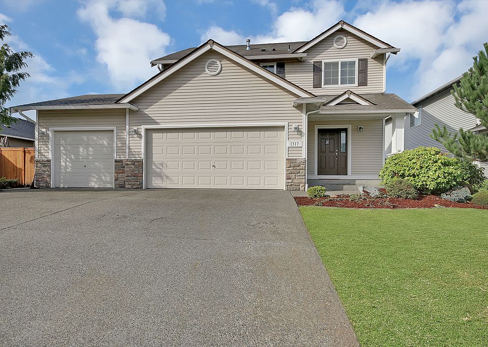 Welcome to River?s Edge! This beautifully maintained home, offers a spacious open floor plan with 3 beds and 2.5 bathrooms. French doors leading to large beautiful landscaped backyard with stunning views of Mt. Rainier!