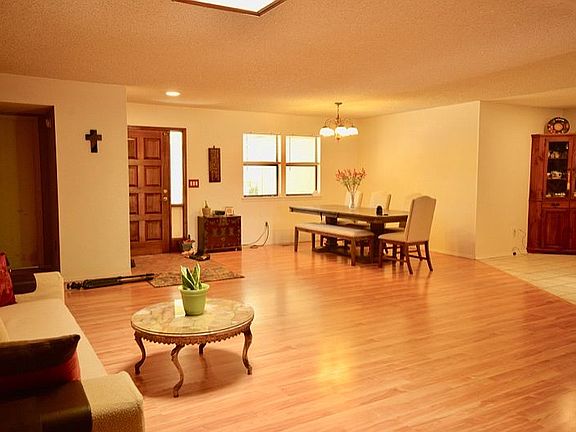Property Id: 287599 This beautiful house with a new roof has 3 BRs attached with their own full bathrooms forming a triangle around a spacy living room/kitchen nicely built on the shiny wood floor. The kitchen has a granite island with an electric smooth style cooktop, a new Samsung refrigerator and a dishwasher. A new heating & air conditioning system makes the house comfortable to live for all seasons, especially with the backyard visible from the main entrance through the living room and a study room wood floor. A large patio in the cozy backyard built on red bricks next to the old vine trees provides a relaxing atmosphere throughout the year. The backyard has a sufficient space for gardening and also some new, small trees that require regular watering with the existing sprinkler system. The house is located in the middle of a peaceful loop with a community picnic area as well as a large playground within walking distances. If you are interested in hiking, it's only 20 minutes from the house to the bases of many beautiful Sandia Mountain trails. This is a beautiful house easy to maintain while enjoying peace and nice neighbors.