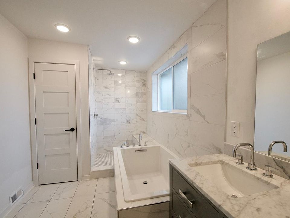 Live the Colorado lifestyle in this beautifully updated Mid-Century Modern Home, located 15 minutes from downtown Denver, amazing natural light and 650+ square feet of covered outdoor space. Brand new stainless steel appliances and large quartz countertops. Perfect for entertaining friends, family, and pets! Two bedrooms and two full bathrooms upstairs; one bedroom, one bathroom, laundry with full-size washer/dryer plus recreation room and storage downstairs. Ideal indoor outdoor Denver living! Minutes from Belmar Shopping Center with shopping (retail/grocery), dining, breweries/bars, events, and entertainment. Features include: Mid-Century Architecture One-Car Garage with storage Recently Purchased LG Side by Side Washer/Dryer Breezeway for entertaining with private front entrance Outdoor Bar Counter with Chandelier Large 7,000 SF lot with Front and Back Lawn and Sprinkler System Shed for Additional Storage Oak Hardwood Floors White "Calcatta" Quartz Countertops Brand New Appliances Duel Fuel Gas Range with Electric Oven Modern Light Fixtures Ensuite Master Bathroom with Marbled Floors and Tile Large 5.5' Bathtub Two Full Bathrooms on Main Level Bathroom with Additional Shower on Basement Level New Full Size Side by Side Washer and Dryer Additional Refrigerator and Sink with Counter Space Located on Basement Level Tenant pays utilities