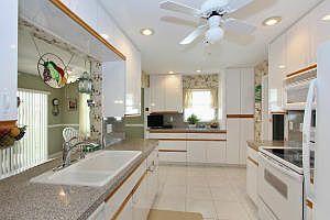 Exquisite corner 2Br/2Ba with full fla room. Paid up recreation lease. Roof repl 2002/A/C 2010/Windows replaced/Hurricane Code garage door/Tile thru-out/Kitchen cabinetry replaced with updated appliances. Front & Back Patios...Walk to R3 clubhouse & Pool...This home has it all.Both baths totally updated/extra cabinetry in kit. and garage, pull down. Will sell furnishings separate deal..staircase, bilfold screend door..Great location..A MUST SEE>>>