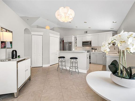 Welcome home to this immaculate and inviting 3-bedroom 2-bath home in the highly coveted Sterling Oaks development. This charming home offers a lovely open floor plan, beautiful large diagonal tile, an updated kitchen with quartz, soft-close cupboards and drawers, stainless Viking appliances and tastefully updated bathrooms. Further enhancing its charm and desirability is the private outdoor patio and wrap-around lanai boasting a gorgeous preserve view to enjoy coffee, adult beverages entertaining family/guests and peaceful tranquility any time of day with the ideal south-eastern exposure. Many other upgrades include a newer roof, completely redone plumbing, a tankless water heater, new fixtures throughout and fresh paint! The immaculate two-car garage adds storage to the already-ample closet space throughout the interior. The white picket fence adds to the charm and fabulous curb-appeal of this gem! Ideally located a short stroll to the beautiful clubhouse, this home offers access to resort-style amenities including a resort-style pool and spa with cabana bar, pickleball and bocce courts, a modern fitness center with locker rooms and sauna, scenic walking paths, a children’s play area, and a lovely on-site restaurant offering Friday night dinners, holiday celebrations, and special events. All of this is in an ideal Naples location within minutes of four world-class white sandy beaches, fine dining, shopping, theaters, and endless recreational opportunities. Optional but affordable tennis membership adds even more with 12 Har-Tru courts, professional instruction, clinics, and team play. This delightful home combines comfort, style, and convenience in one of Naples’ most desirable communities—an exceptional opportunity to enjoy resort living at its finest. Sterling Oaks is in an X flood zone with low HOA fees. Don’t miss this opportunity! It won’t last long!