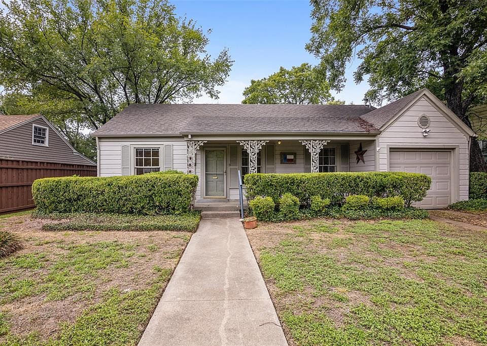 NEW ROOF! Classic 2 bed, 1 bath home in Historic Oakhurst offers original parquet floors & lots of natural light. 6 minutes from the Stockyards, 8 minutes from downtown Fort Worth, close to Race Street, easy highway access, & Trinity Trail system! Enjoy your morning coffee on the covered front porch. The living room provides an excellent place to entertain with fireplace mantle as the focal point. The white kitchen has granite countertops & is open to the dining. Large sliding glass door leads into your own private oasis in the city with large open patio & lush landscaping. The bathroom was recently updated with new vanity, shower tile, & jetted tub! 1 car garage provides extra storage & washer, dryer hookups.