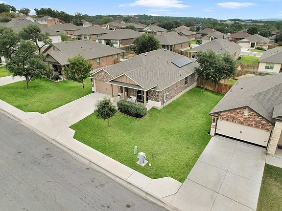 Welcome to 1317 Spicewood in the Peppermill Subdivision, Burnet TX! Built in 2020, this 1,783 sqft home offers 3 bedrooms, 2 baths, laundry room, and a dedicated office with double door entry. The living room features a custom wood accent wall and electric fireplace. The kitchen includes granite countertops, large island, built-in microwave, and walk-in pantry. Master bedroom on back side of home with on-suite and thumbprint security feature. Kenmore fridge and Samsung washer/dryer are negotiable. Home features solar panels, reverse osmosis system (Puro Max), water softener (Crystal Clear Water Systems), ADT security, and double attached garage. All-electric home with full irrigation system front and back. Custom barn door provides privacy/sound barrier for secondary bed/bath area. Enjoy permanent Govee LED exterior lights year round with 75+ color/pattern options. Close to schools, restaurants, H-E-B, Lake LBJ, Inks Lake, Lake Buchanan, Delaware Springs Golf Course, Horseshoe Bay golf community, The Legends Golf Course, local wineries, Ascension Seton and Scott & White medical care, and quick access to the Austin metro.