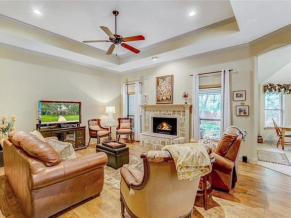This charming 2006 built home in sought after Oak Harbor Estates features immaculate finish out and is move-in ready. Located on a heavily treed interior lot, this one story home offers a 4 bedroom, 2 bath split floorplan. Light and bright with finishes such as granite countertops, stainless appliances, hardwood floors and more! The living room and dining room are open and feature a stone fireplace and tray ceiling. The master suite offers his-hers closets, dual vanity, garden tub and walk-in shower. Enjoy the peaceful tranquility from your back porch with shade trees and privacy. One not to miss!