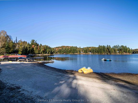 Wake up to sunrise views over Haliburton Lake, spend your afternoons swimming from your private sandy shoreline, and end the day soaking in your own lakeside hot tub. This stunning 5-bedroom, 3-bathroom year-round home or cottage offers the perfect blend of modern comfort and relaxed waterfront living on the highly sought-after Haliburton-Oblong 2-lake chain. With 2,256 sq ft of finished living space across two bright, above-grade levels, there's plenty of room for family and friends. The main floor features an open-concept living and dining area with a cozy brick wood-burning fireplace and a walkout to a wrap-around deck with sweeping lake views. The spacious chefs kitchen includes an island, ample cabinetry, and picturesque sightlines over the water. A versatile den is ideal for a reading nook, office, or media room. Three bedrooms complete the main level, including a large primary suite with a beautifully renovated ensuite. The lower level is designed for entertaining, offering a sunlit rec room, games area, two generous bedrooms, and a 3-piece bath. Step outside to the hot tub overlooking the lake, perfect for unwinding after a day of boating, fishing, or swimming. Outdoors, the level lot makes lakeside living effortless. Enjoy your private sand beach, dock your boat with ease, and explore the 2-lake chain at your doorstep. A detached 1-car garage provides storage for all your gear. This turn-key property has been recently upgraded with a new HVAC system (2023) and comes fully furnished, just arrive and enjoy. Whether you're seeking a family retreat, a year-round home, or a rental investment, this property offers it all. Located just 5 minutes from Fort Irwin, 30 minutes to Haliburton Village, and only 2.5 hours from the GTA, this lakeside getaway is both accessible and private. Rare opportunities on Haliburton Lake don't last long, book your private showing today and start your lakefront lifestyle.