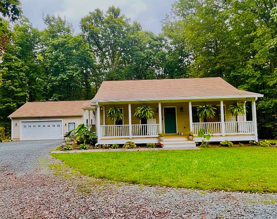 Freshly painted and updated single story home with basement and large garage/workshop. This house features a large covered front porch and a wrap around side/rear deck great for relaxation or entertainment. Flat front yard perfect for children. Plenty of parking with large driveway along with 28x30 garage/workshop with high ceilings and oversized 8'x16' door. 2 bedrooms upstairs along with 2 full bathrooms. 1 bedroom and 1 full bath in the finished basement. Laundry room is located in the basement utility room that features ample storage. Hardwood flooring throughout main level. Stainless steel appliances along with granite in kitchen. Excellent well water and water pressure. Recently replaced HVAC. Peaceful country setting located minutes from 64. 25 minutes to Charlottesville and 25 minutes from Richmond for an easy commute.