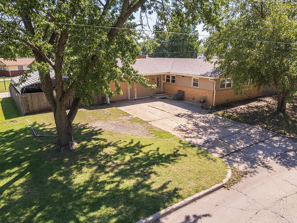Are you looking for lots of space, both indoors and out, in a great neighborhood with mature trees? I've got you covered! This neat and tidy house with fresh interior paint is just waiting for you to call it home! The covered porch welcomes you into the entry hall which opens into the huge living room with plenty of room to entertain or just relax. The dining area offers plenty of seating room! Step into the large kitchen with a peek-a-boo window so the cooks aren't cut off from the fun happening in the rest of the house. At the end of the kitchen you will find a serving bar accessible from the flex space or kitchen! Perfect for grabbing a quick bite or entertaining! Speaking of flex space, there are two in this house! The first is off the living room and you could convert part of it into a bedroom or an office with the addition of a wall. The second is off the entry hall, and with a little updating it could be a great rec room, exercise room, office, whatever you need it to be! Down the hall you will find three bedrooms with hardwood floors! And yes, one of them is an actual master bedroom with an ensuite bath! As if all of this weren't enough, lets talk about the outdoor space. The backyard is completely fenced, and offers a covered patio, plenty of room to roam, and a storage shed. The house has an attached one car garage, and also offers an enormous carport big enough to house at least 3 vehicles, and has a privacy gate. Don't miss out on this one- schedule your tour today!